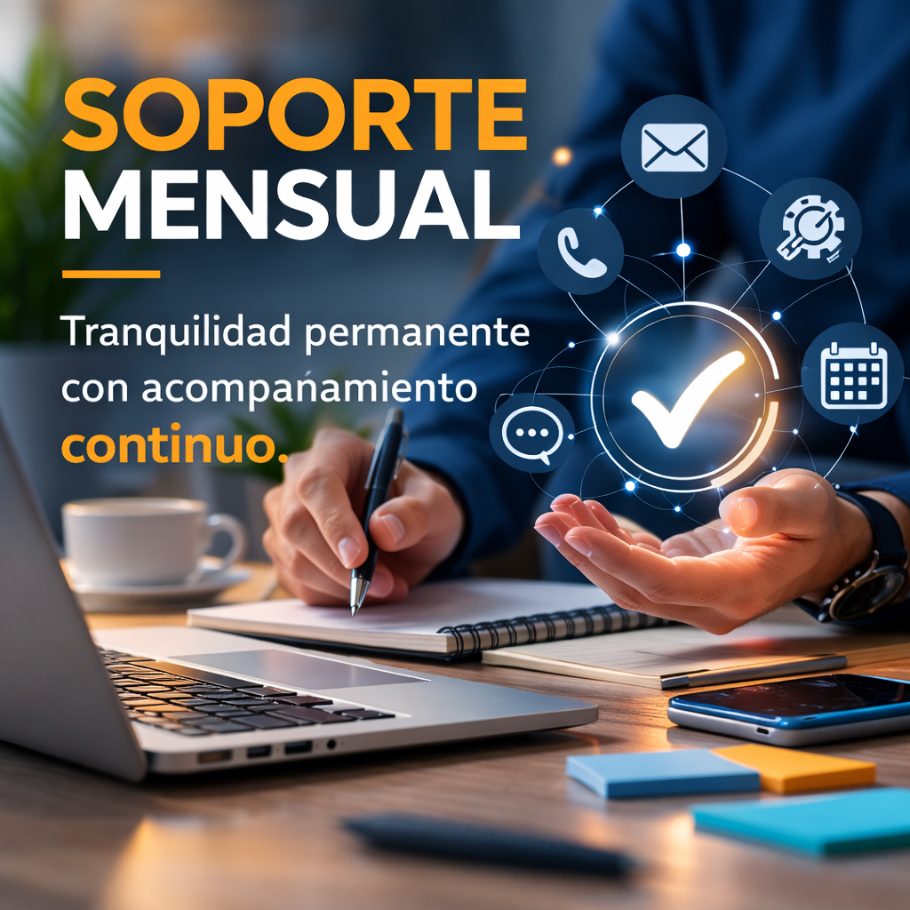 Si tu negocio requiere soporte estable y cobertura constante, el plan mensual es la mejor alternativa. Contratas un número fijo de horas cada mes y aseguras que siempre tendrás respaldo para ajustes, mejoras o capacitación.